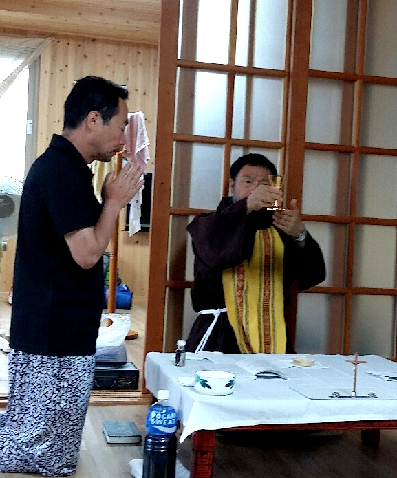 땅끝성당이다. 성모님께 인사를 드리고 성당에 들러 저녁성무일도를 한 후 모두들 행복한 저녁식사를 한다. 해남공소에서 융숭한 대접을 받으며.