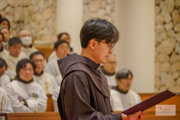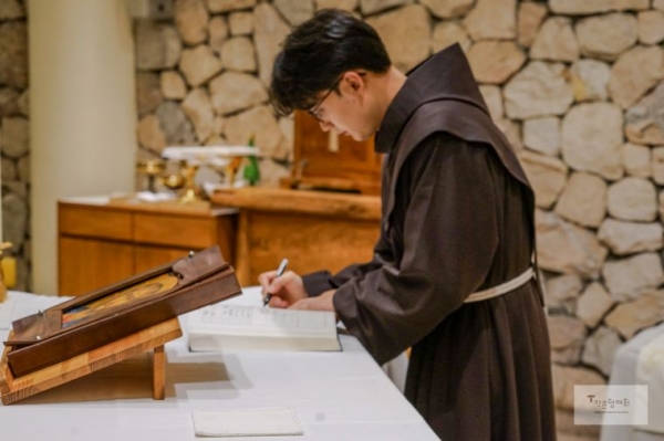 지난 2026년 1월 12일 오후 3시 서울 정동 프란치스코교육회관 1층 성당에서 관구봉사자 김상욱 요셉 형제님의 주례로, 광주대교구 운남동성당 출신 김준희 사도 요한 형제의 성대서약식(종신서약)이 거행되었습니다. 사도 요한 형제가 이 삶을 항구하게 잘 걸어갈 수 있도록 많은 기도와 관심을 부탁드립니다. 감사합니다.