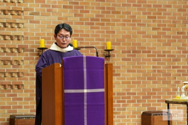 미사강론을 하시는 관구봉사자 김일득 모세 형제님