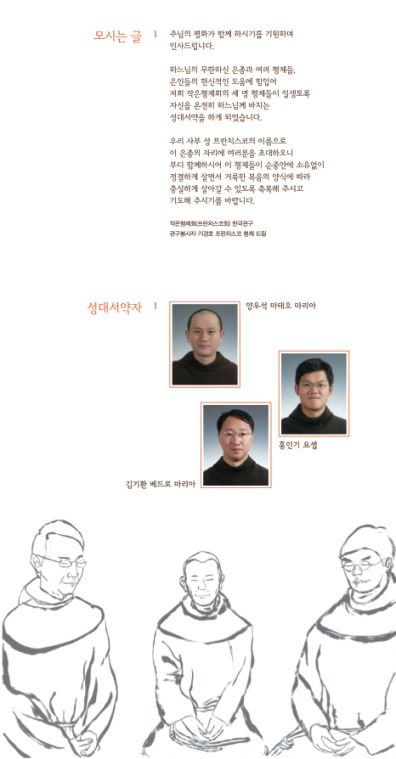 저희 작은형제회(프란치스코회)의 세 명의 형제들(양우석 마태오 마리아, 김기환 베드로 마리아, 홍인기 요셉)이 일생토록
