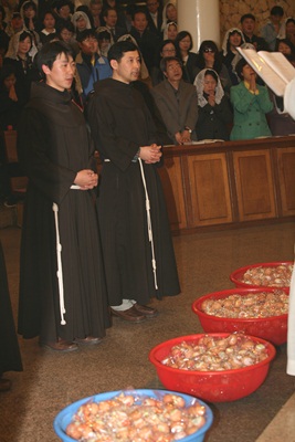 부활성야 미사가 프란치스코 교육회관 성당에서 저녁 8시에 거행되었습니다. 수도원 마당에서 빛의 예식으로 시작하였습니다. 성가대가 특송으로 '헨델의 알렐루야'를 불러 더욱 더 기쁜 마음을 불러일으켰습니다. 부활계란과 떡을 나누어 드리고, 수도원 마당에서 간단한 파티를 하였습니다.